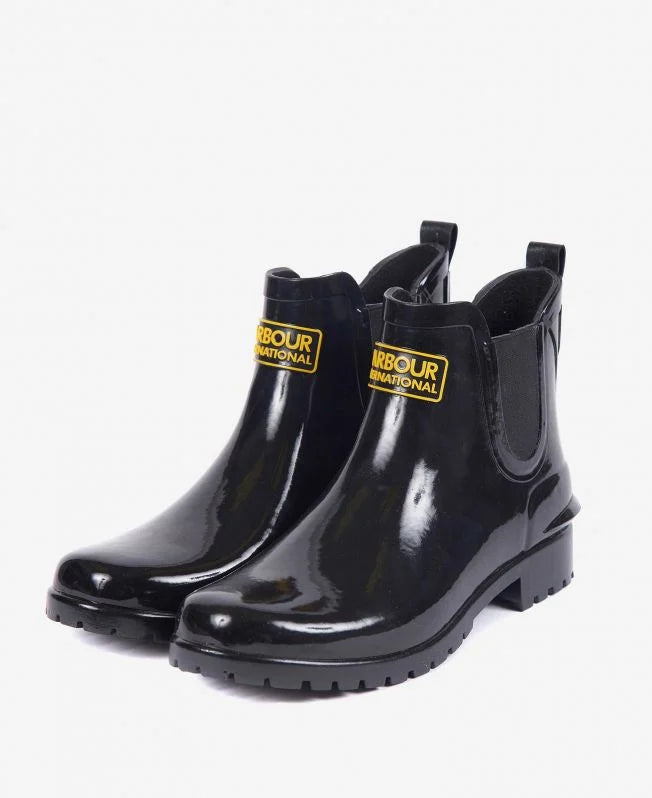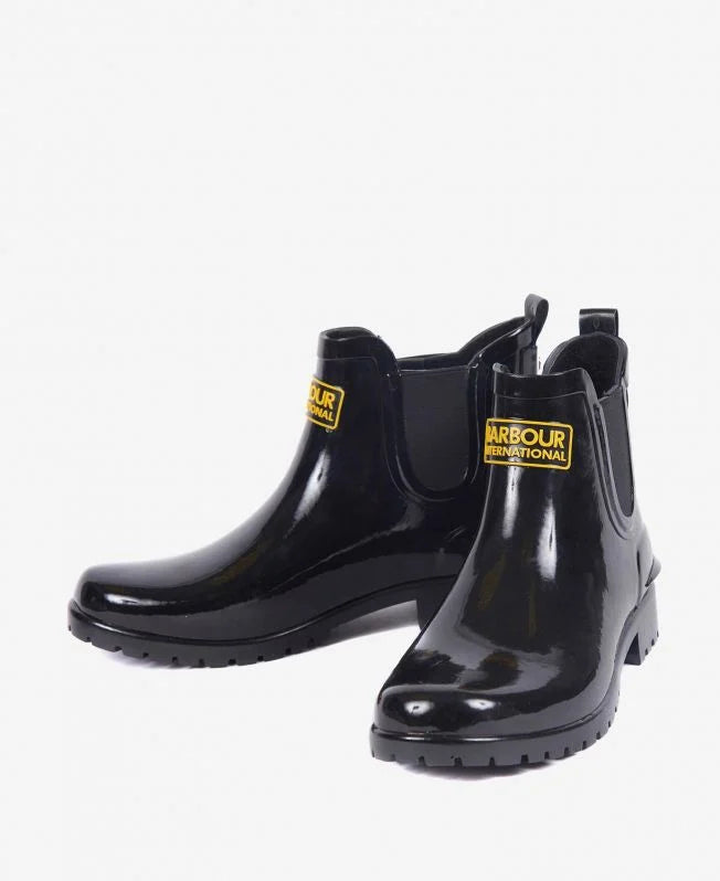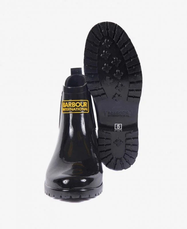 Combining the classic design of a Chelsea boots with the look and feel of a wellington, the Barbour International Assen Chelsea Wellingtons are a stylish option that are sure to keep your feet protected in wet weather. Complete with a contrast lozenge logo to the front they have a subtle heel for a little bit of lift.