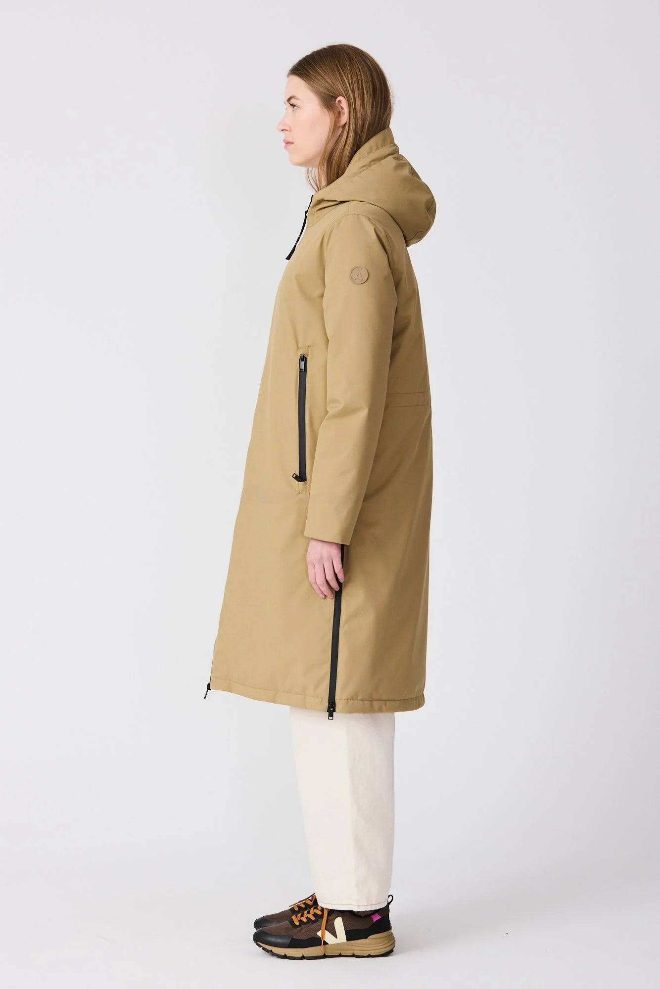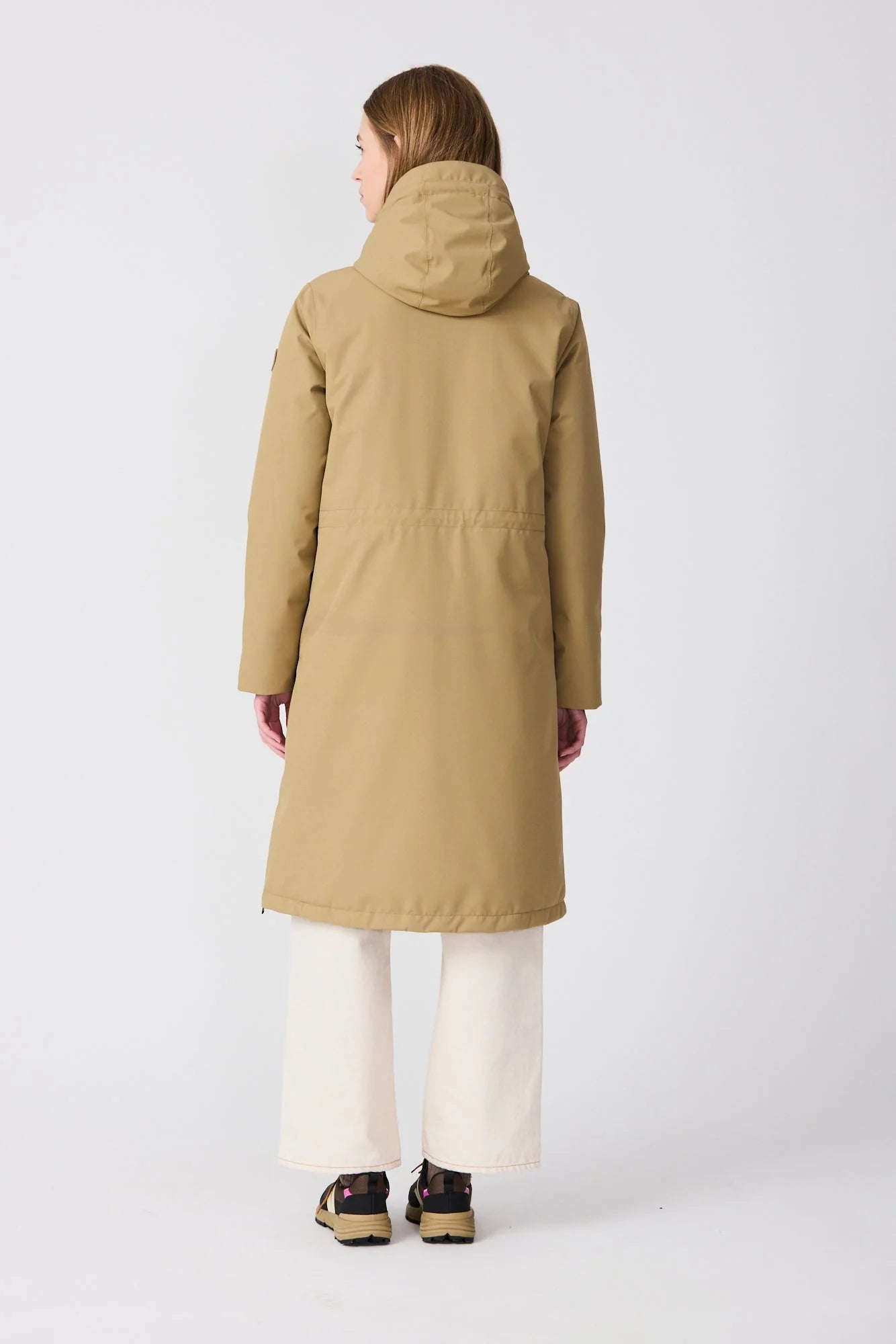 padded with a featherless and breathable insulation layer and cut into a long a-line silhouette. It features all seams taped for a superior protection. With pockets with long double cursor waterproof zippers, it's closed by a waterproof zipper through front, and finished with interior backpack straps to carry the garment hands-free. It ensures a customized fit with an adjustable drawstring waist on the back. 100% waterproof