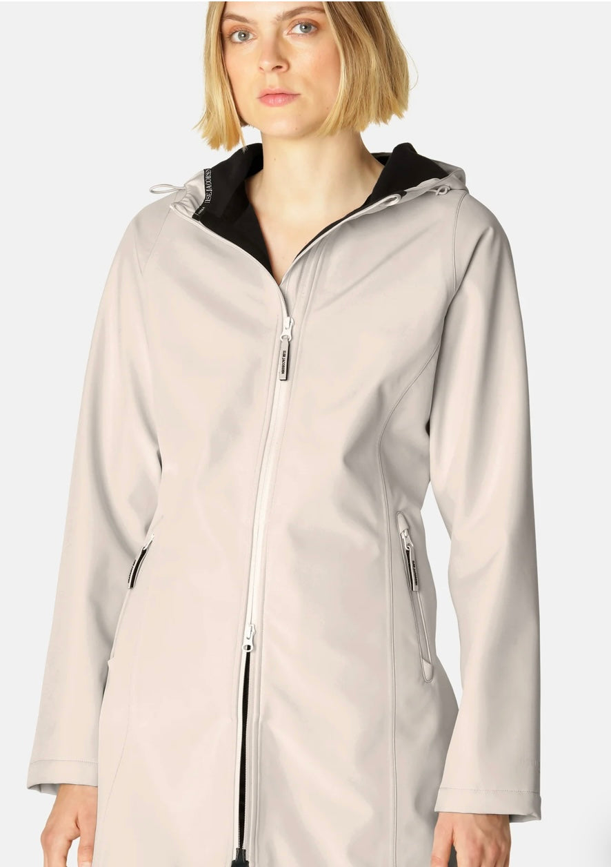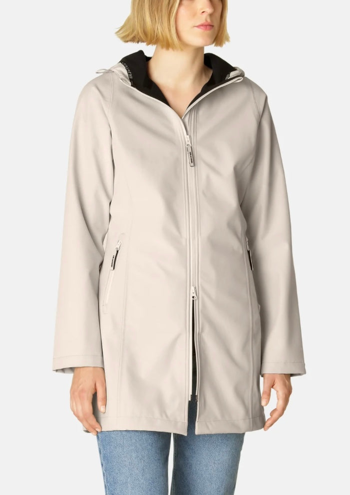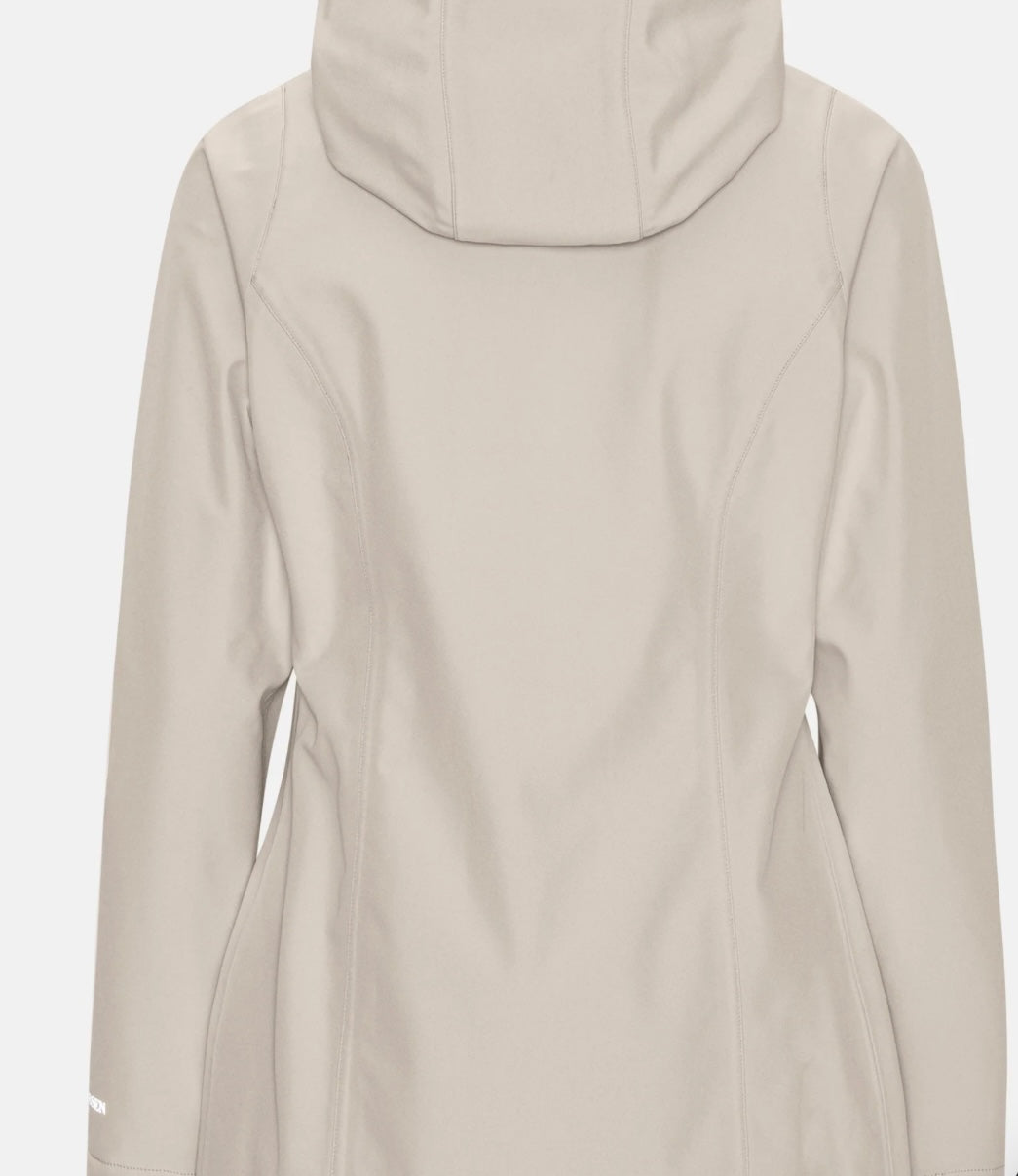 This elongated softshell coat has a figure flattering silhouette and is made in a soft fleeced backed, stretchy, 3-layer softshell fabric. The fabric offers an active stretch for easier movement, unique comfort and warmth while still being a lighter summer version softshell. This raincoat has taped seams, Ecorepel® and a waterproof rating of 5000 mm which will be enough for medium to heavy showers, while 3000 gr/m2 ensures you can move without feeling damp. The Daybreak softshell coat gives you the perfect combination between stretch and durability. An ideal, multifunctional outdoor jacket for various outdoor activities no matter the weather.
