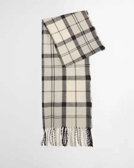 The Barbour Dover Beanie & Hailes scarf gift set includes a knitted beanie with faux fur pom and a 'Hailes' style tartan scarf with tassels. Presented in a smart gift box, the accessories are finished with a Barbour embossed badge to the hat.
