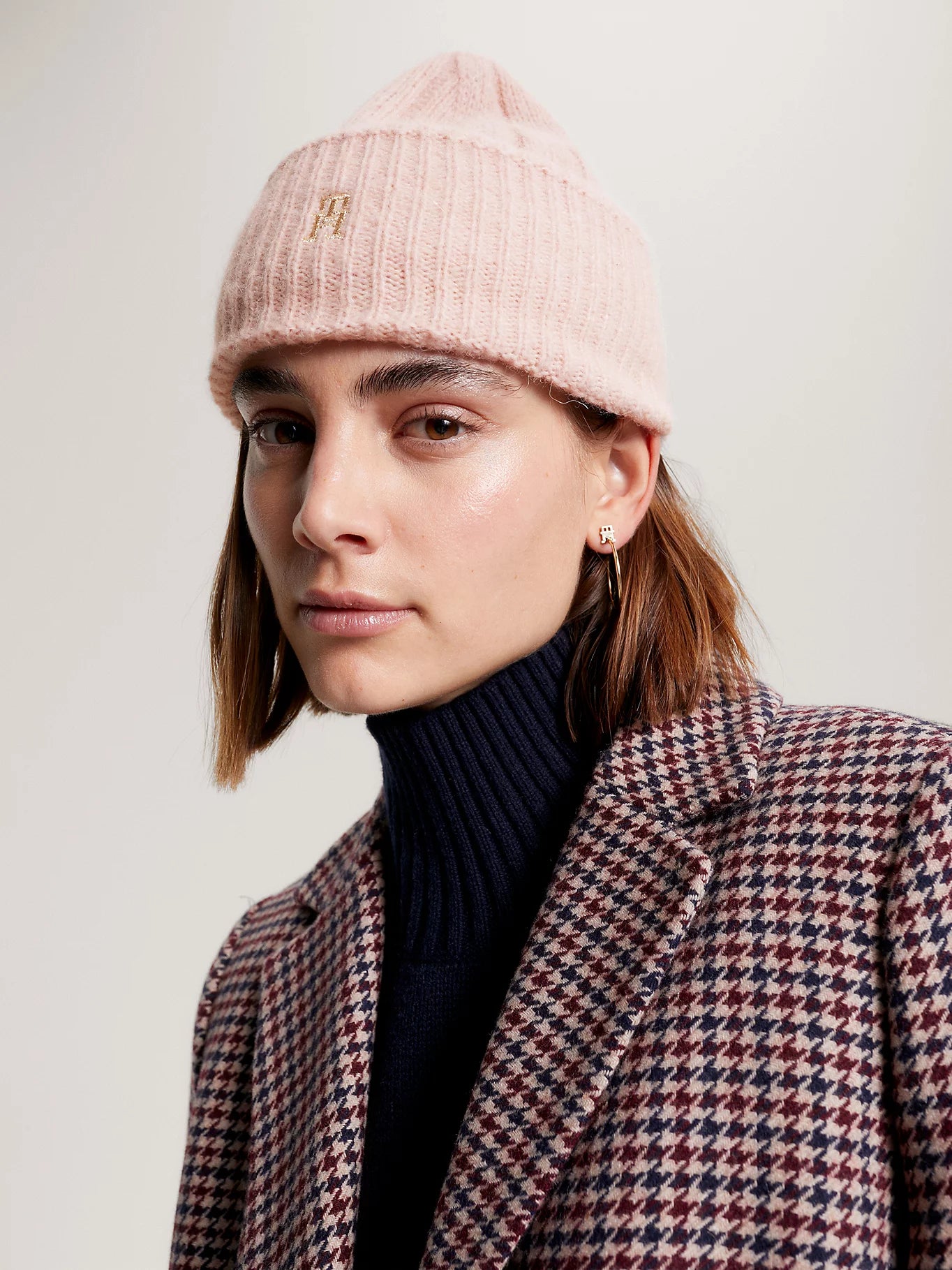 MONOGRAM PLAQUE BEANIE- Pink
