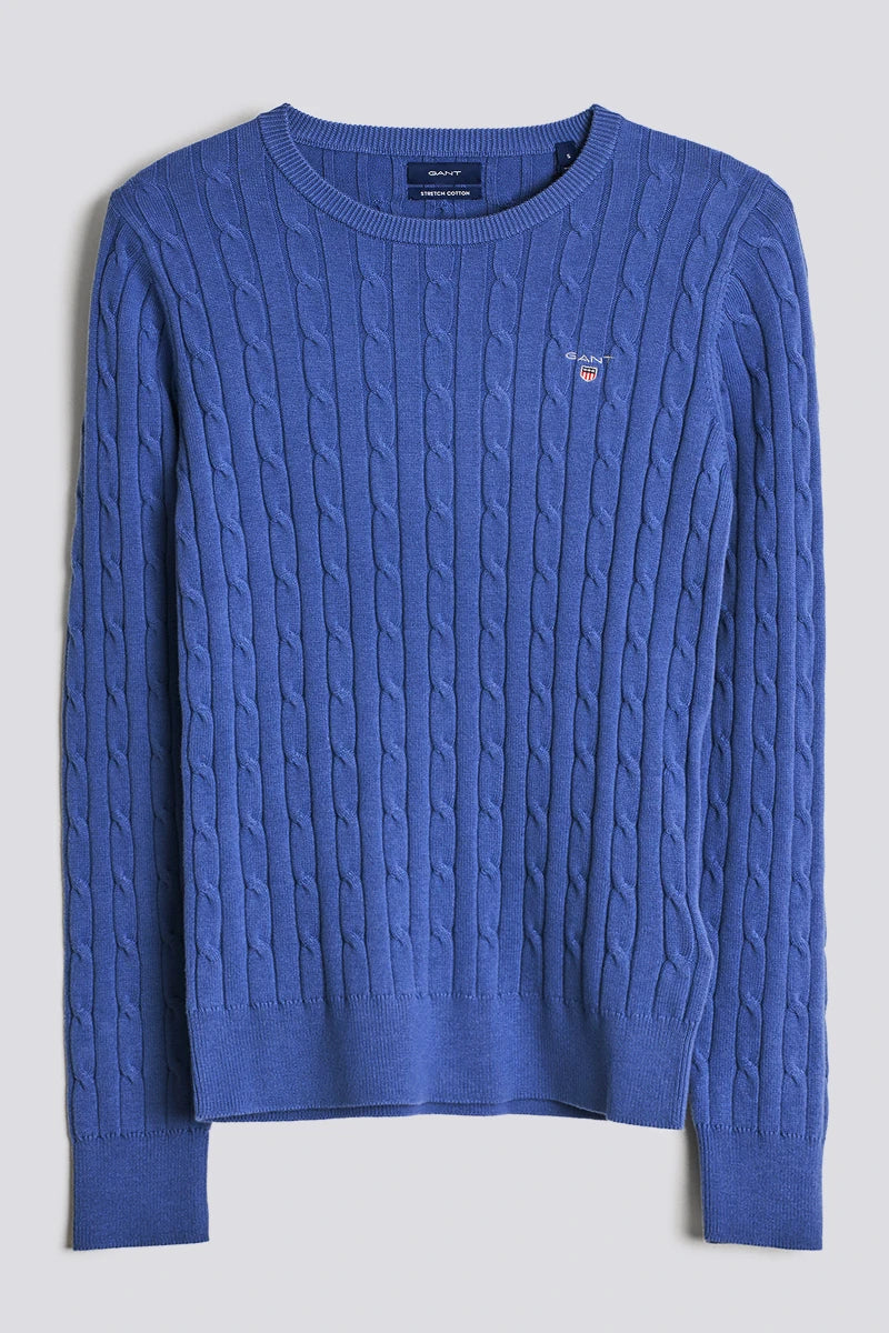 Stretch Cotton Cable Crew Neck Sweater- Hurricane Blue