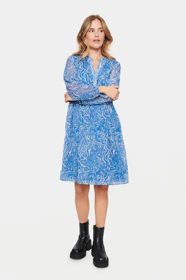 Valerie V-Neck Chiffon Dress, Dutch Blue Water